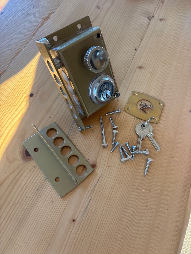 Detalles del productoCerradura de seguridad con acabado dorado, ideal para puertas.