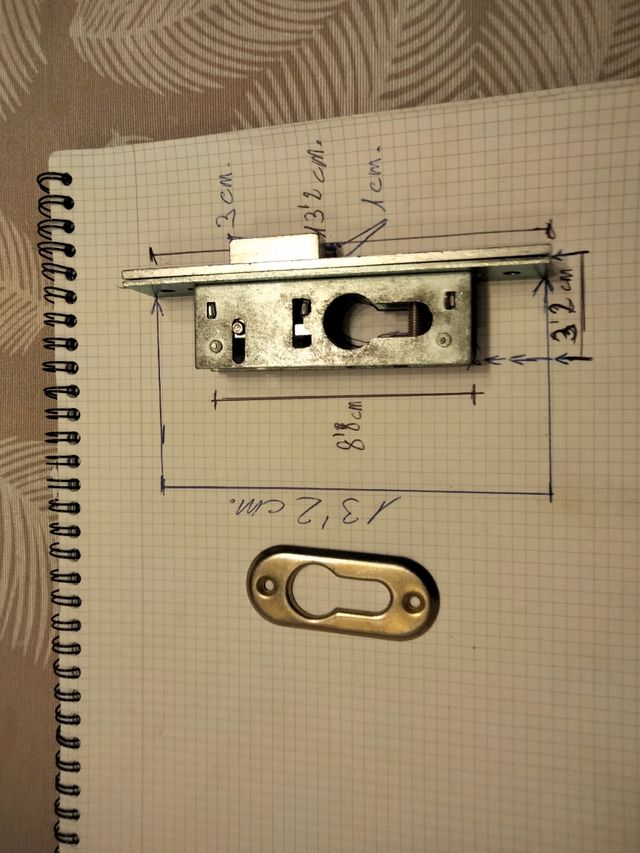 Cerradura de llave sola de 20 mm. de aguja 1 Cajetín y escudo.