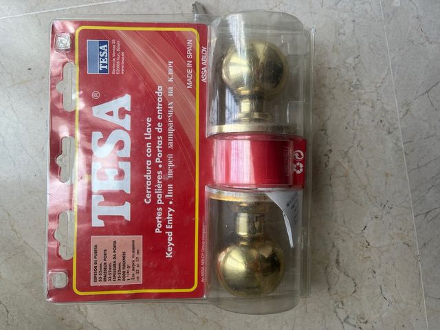 Detalles del productoCerradura de entrada TESA con acabado dorado. Ideal para puertas de entrada.