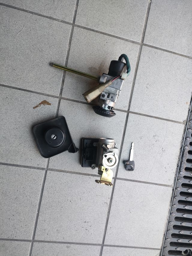 Conjunto de piezas de Kymco, incluyendo la cerradura de contacto y llave - Cerradura de encendido con varilla. - Tapa de depósito. - Llave de contacto.