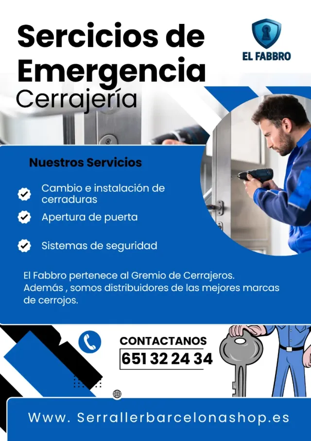 Si necesitas un cerrajero de urgencia, 24 hr. Realizamos Apertura de puertas (extravío de llaves, cierre accidental, Cambio de cerraduras y cilindros de seguridad. Instalación de sistemas de seguridad (puertas acorazadas, blindadas, dispositivos anti-robo). Mantenimiento y revisión integral de cerraduras y sistemas de acceso. Asistencia inmediata en toda Barcelona y alrededores.