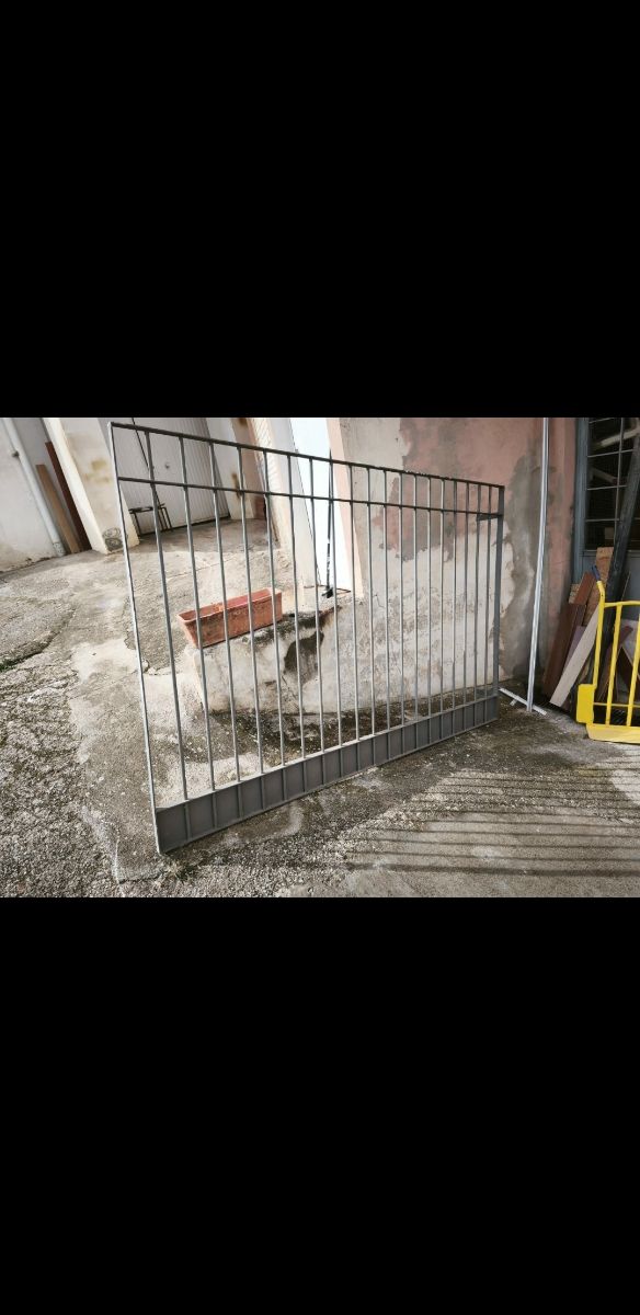 Detalles del productoCerramiento de terraza en hierro , también puede servir de valla, 252 x 170 cm , la separación entre barrotes es de 10 cm .