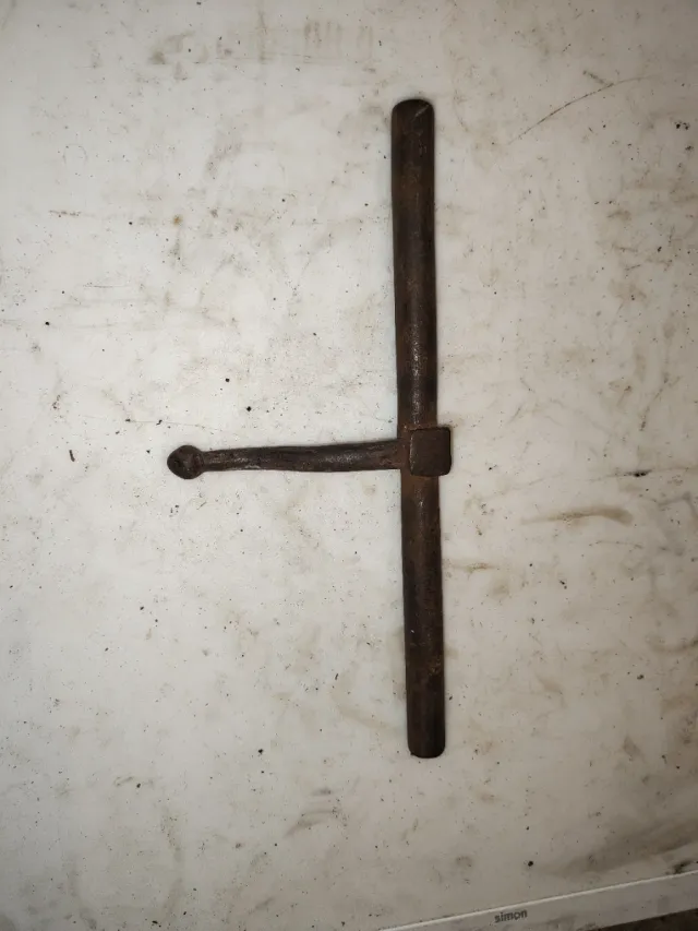 Cerrojo antiguo de hierro, ideal para puertas o portones. - Fabricado en hierro. - Diseño robusto y clásico.