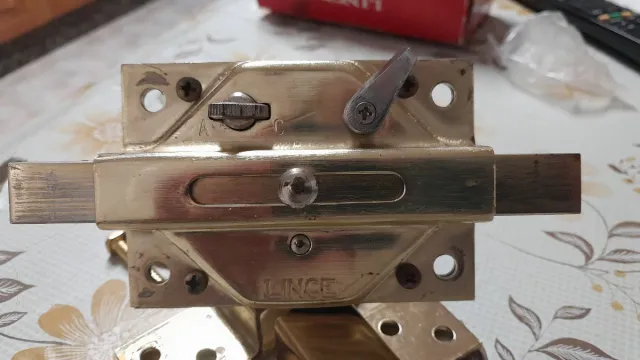 Cerrojo de seguridad para puertas de la marca LINCE. Fabricado en latón con acabado brillante. - Mecanismo de pestillo. - Incluye tornillos de fijación.