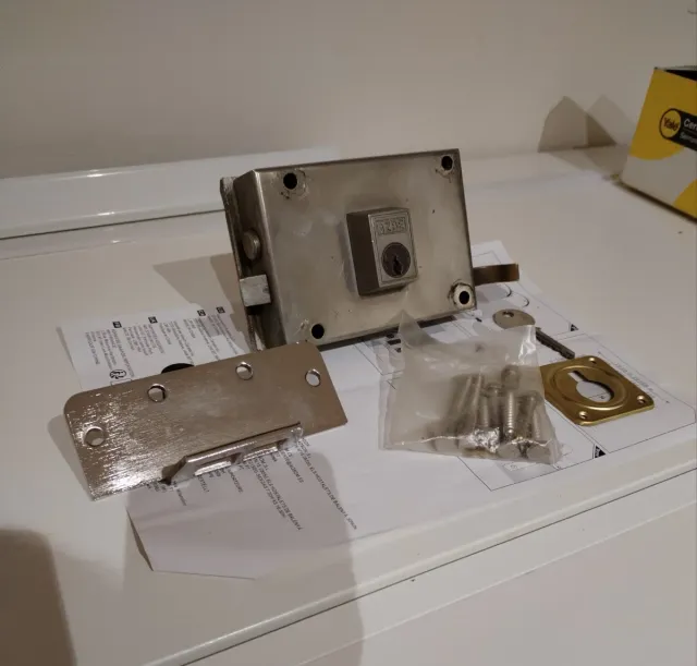Todos los accesorios del cerrojo tornillos chapa la placa de cierre todo es nuevo menos la cerradura principal que está usada