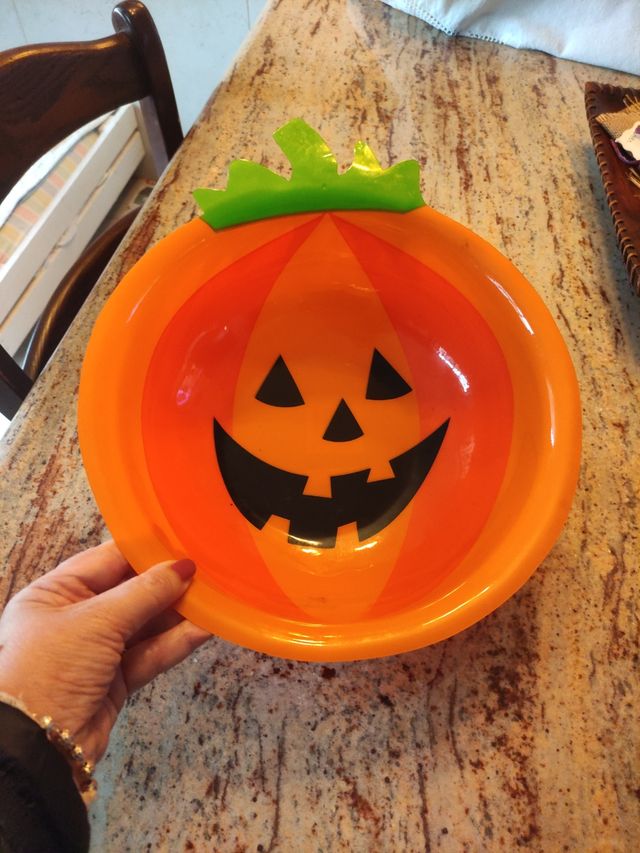 Cuenco grande, calabaza de plástico ideal niños y decoración Halloween 🎃 34 cm de diámetro.