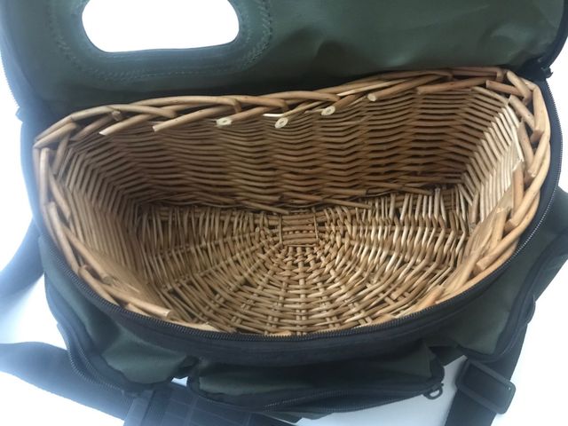 Cesta de pesca de mimbre y forrada de lona con bolsilllos. - Material: Mimbre - Marca: EVIA - Nueva, sin uso.