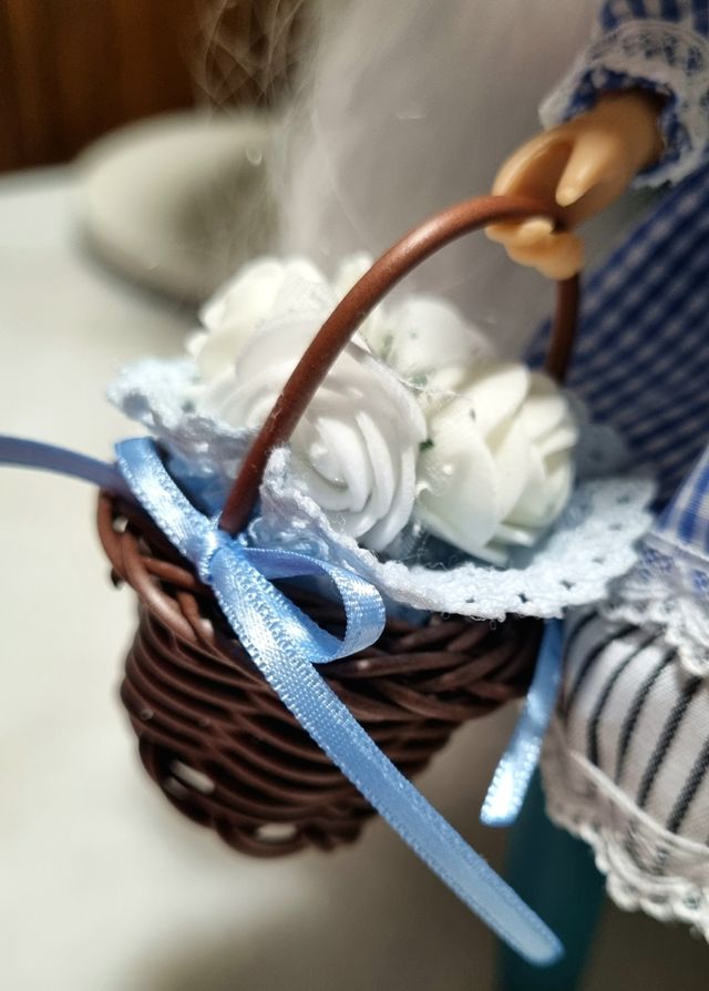 Detalles del productoBolso cesta con flores blancas, adornada con puntilla y lazos de raso azul, ideal para Blythe, Pullip, Paola Reina, QBaby...