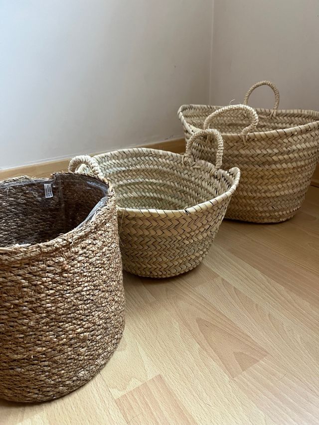 Cestas de mimbre y yute
