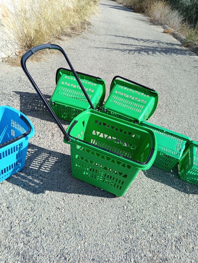 - Cestas de mano y cestas con ruedas y con asa para ser más cómodas.