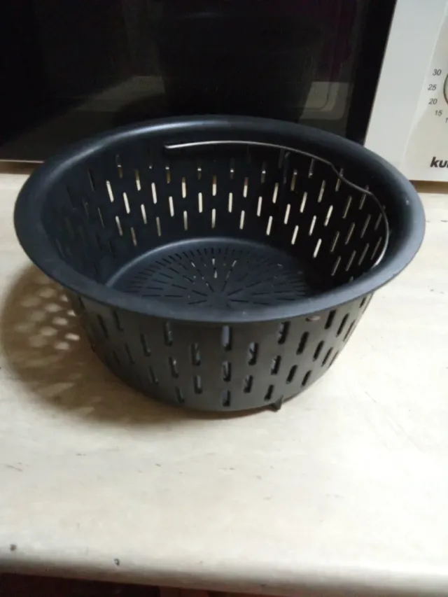 Cesto para cocedor Thermomix de Lidl. Es un accesorio de cocina versátil. - Color negro. - Diseño con perforaciones.