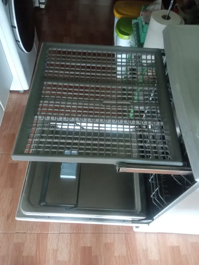 Cesto para cubiertos de lavavajillas Indesit. Fabricado en plástico gris. - Diseño de rejilla. - Compartimentos para organizar los cubiertos.