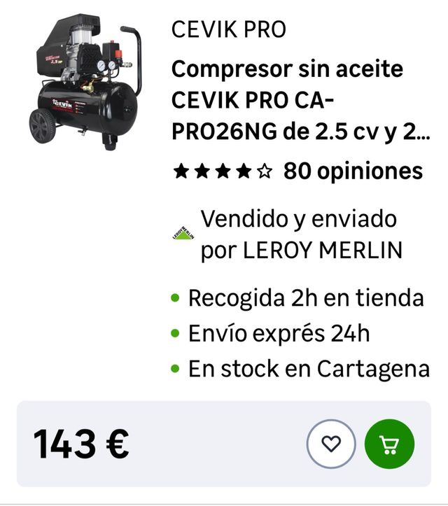 CEVIK PRO Compresor sin aceite 2.5 cv