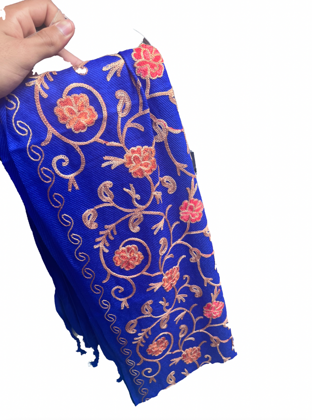 Chal bordado azul y rojo