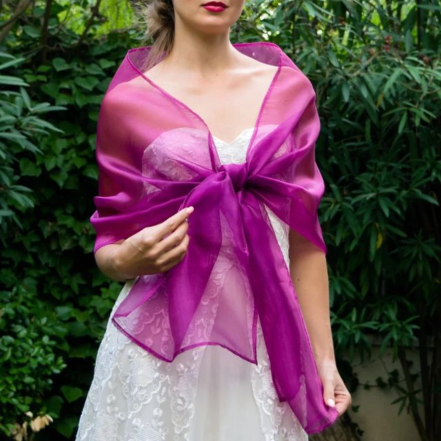 Detalles del productoChal de organza muy elegante color púrpura para fiesta de bodas o vestido de noche / A very elegant organza shawl in purple for your wedding party or evening dress.