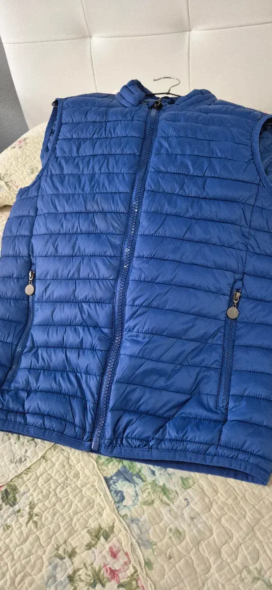 Chaleco acolchado de color azul marino. Es ligero y cómodo.