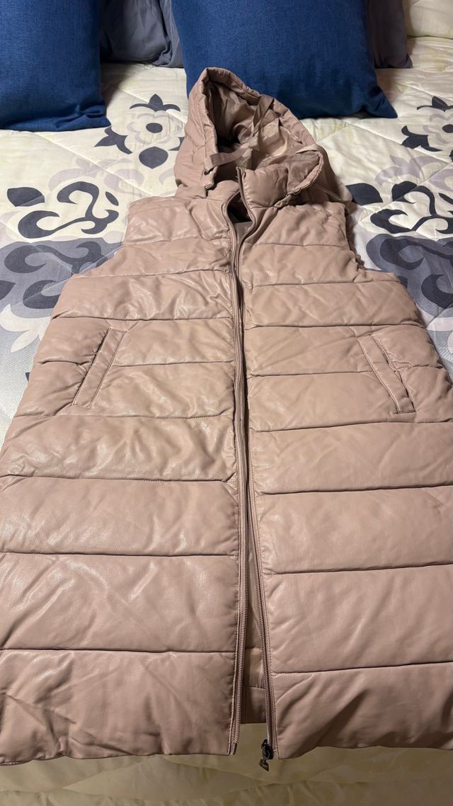 Chaleco acolchado cafe con capucha
