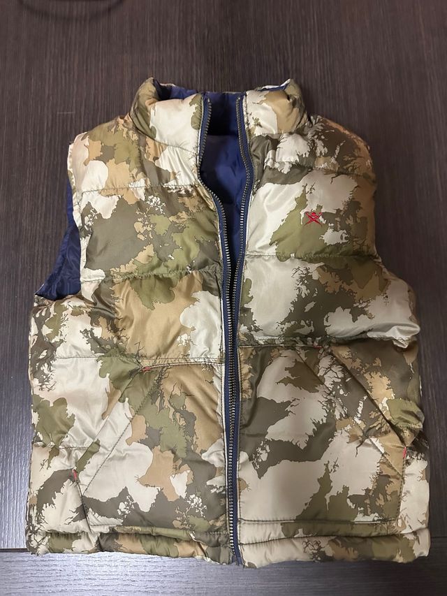 Chaleco acolchado con estampado de camuflaje/ azul marino reversible para niño. - Cremallera frontal. - Cuello alto. marca Hackett