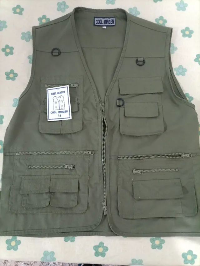 Chaleco de la marca COOL IMAGEN con múltiples bolsillos, ideal para actividades al aire libre.