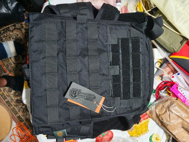 Chaleco CVS Plate carrier Conquer negro sin estrenar, con las etiquetas aún puestas. Airsoft