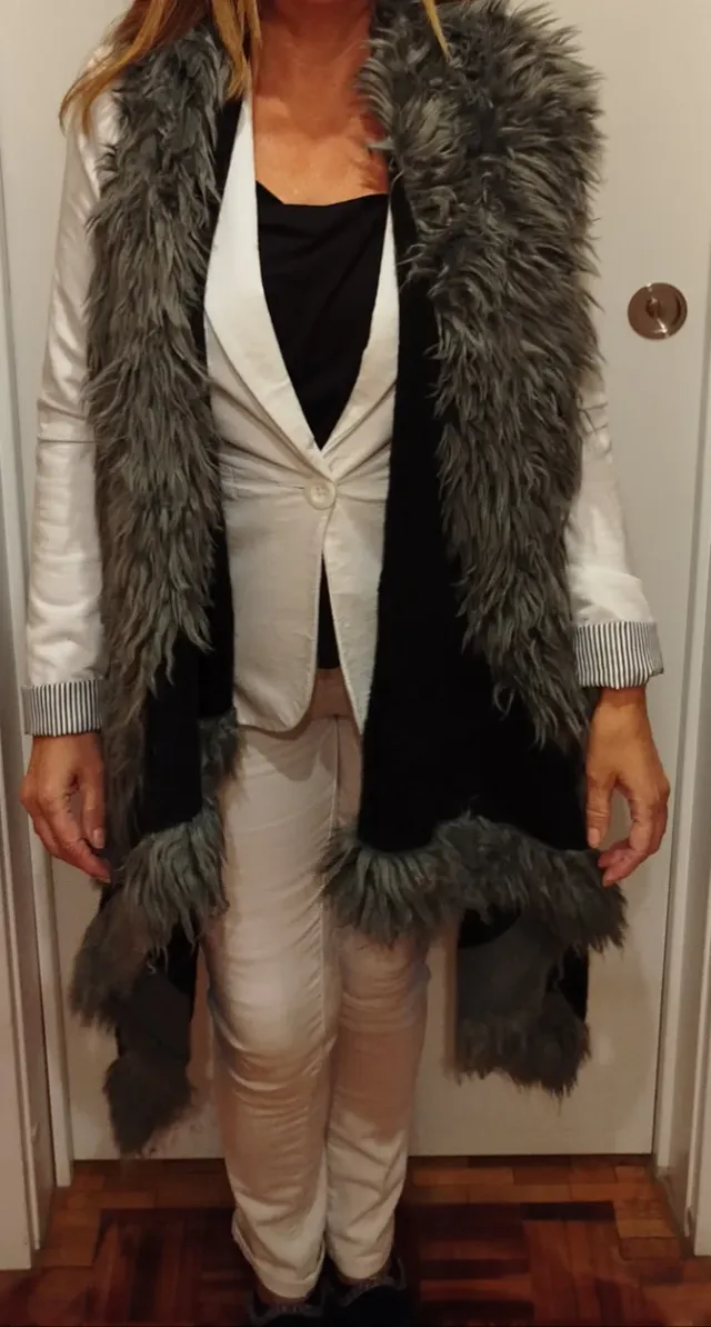 Chaleco de pelo gris y negro