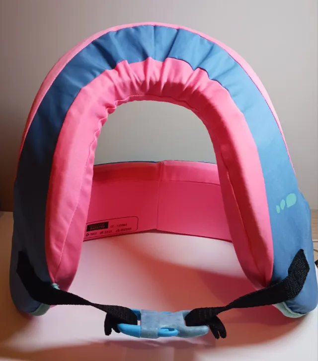 Chaleco flotador de la marca Nabaiji, diseñado para ofrecer seguridad y comodidad. - Colores: rosa y azul. - Cierre de seguridad con hebilla. - Material textil.