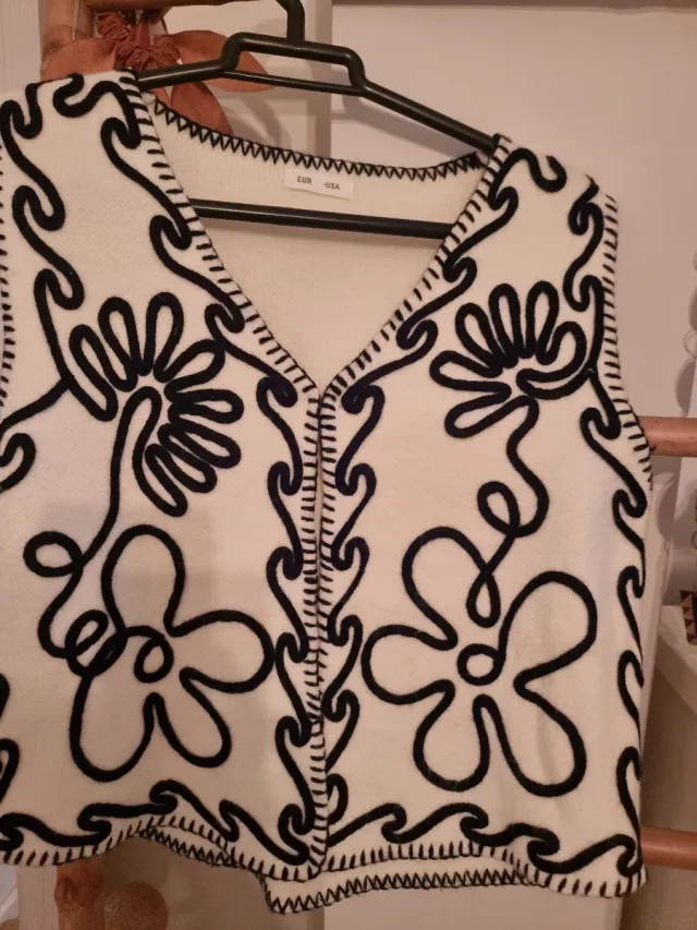 Chaleco lana bordado blanco y negro