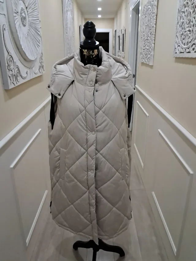 Chaleco largo acolchado beige