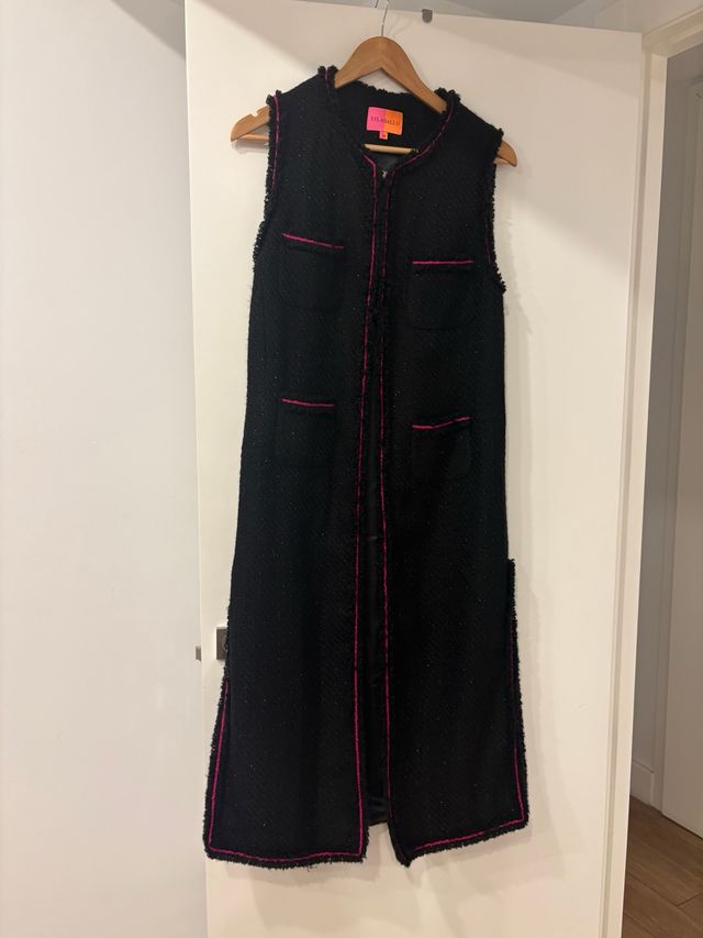 Chaleco largo Vilagallo negro con detalles fucsia