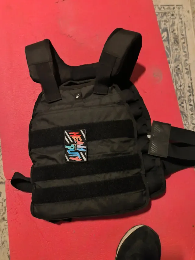 Detalles del productoChaleco lastrado de Decathlon con un peso de 20 kg. Ideal para entrenamiento de fuerza.