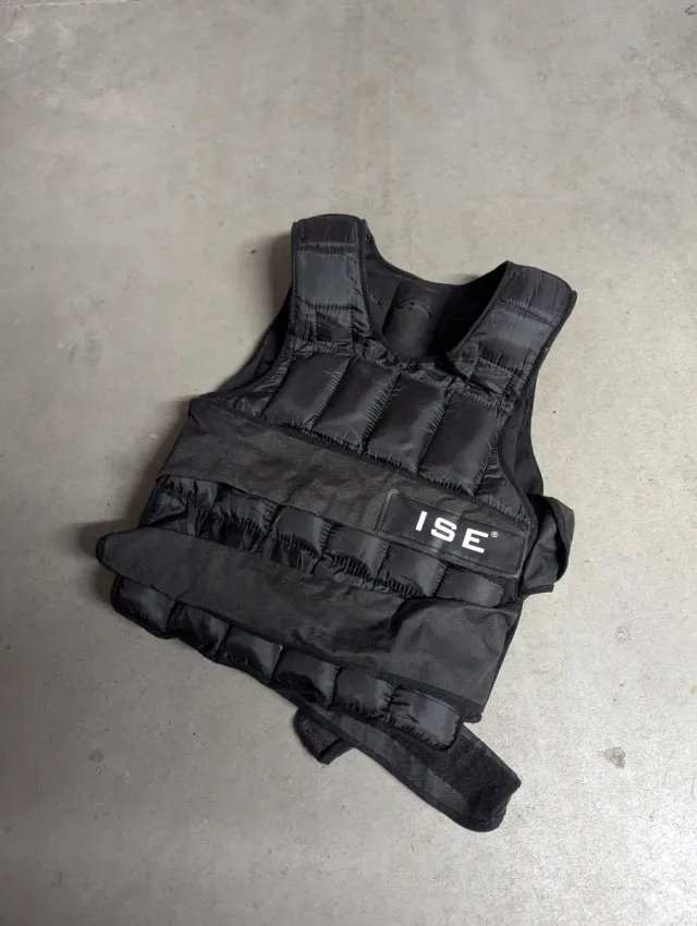 Chaleco de entrenamiento con peso ajustable. Ideal para mejorar la resistencia y la fuerza, 10 kg. - Color negro. - Cierre de velcro. - Logo de la marca ISE.