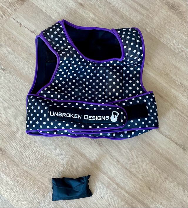 Detalles del productoPerfecto estado y velcro perfecto. Blandito y comodo. Se nota algo decolorado en alguna zona por haberlo lavado bien. Viene con multiples saquitos de quita y pon para ajustar el peso deseado.