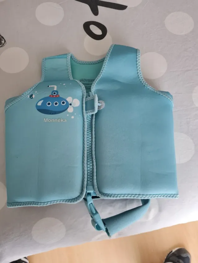 Detalles del productoChaleco de natación azul con diseño de submarino.