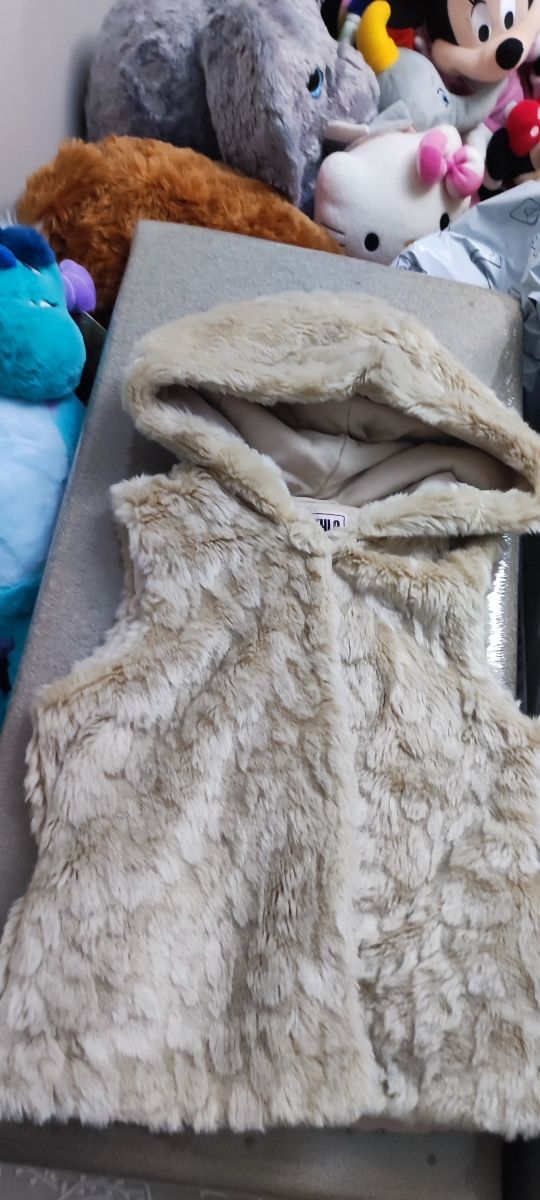 Precioso chaleco de niña, color beige, con capucha. Está en muy buen estado. Cierre con corchetes.