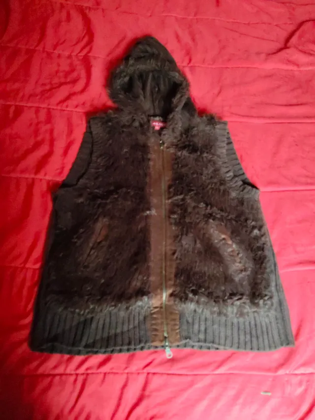Chaleco pelo capucha mujer marrón Talla L