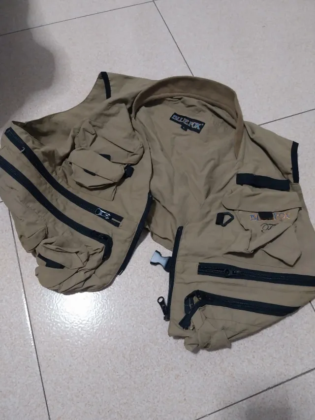 Chaleco de pesca de la marca Blue Fox talla L ideal para actividades al aire libre.