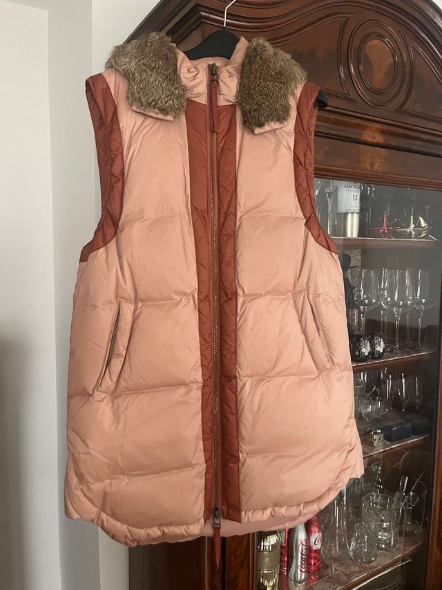 Chaleco plumífero con cuello de piel