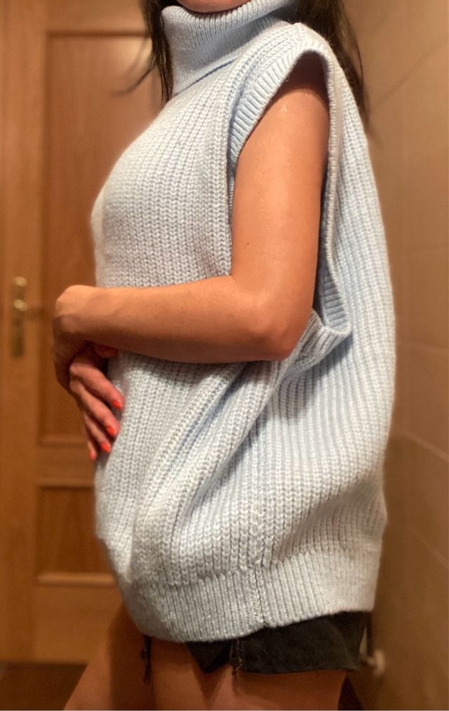 Chaleco punto cuello alto azul