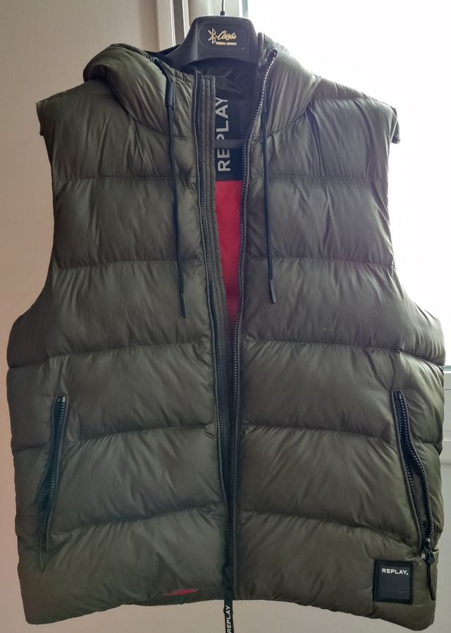Chaleco de plumas Replay verde con capucha