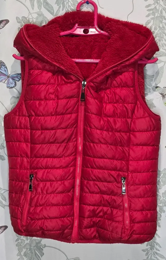 Chaleco reversible acolchado rojo con capucha
