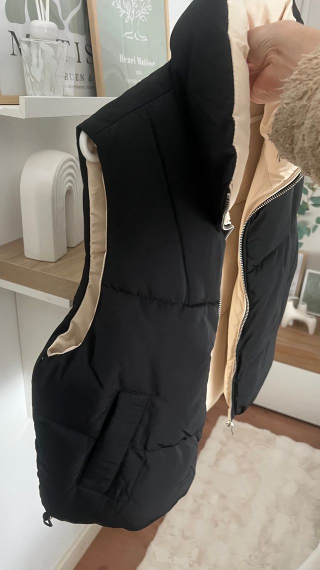 Chaleco reversible negro y beige Talla S
