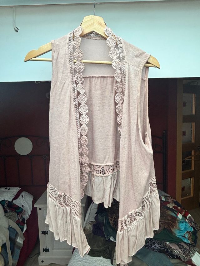 Chaleco rosa con encaje