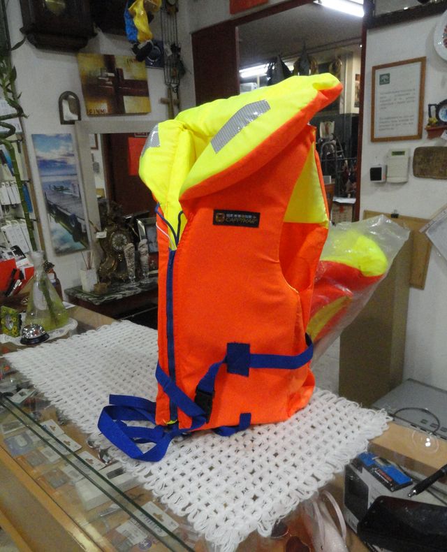 Detalles del productoChaleco salvavidas de la marca CappyMar en talla L. Es de color naranja y amarillo con detalles reflectantes.
