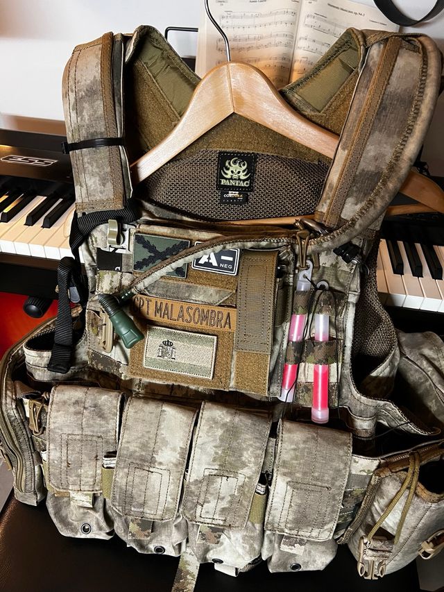 Detalles del productoChaleco táctico CIRAS de la marca PANTAC. Diseño en camuflaje A-TACS y con múltiples compartimentos.