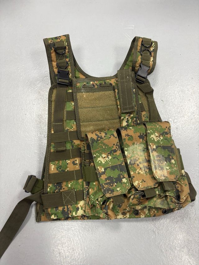Detalles del productoChaleco táctico militar con diseño MOLLE en color verde. Ideal para actividades al aire libre.