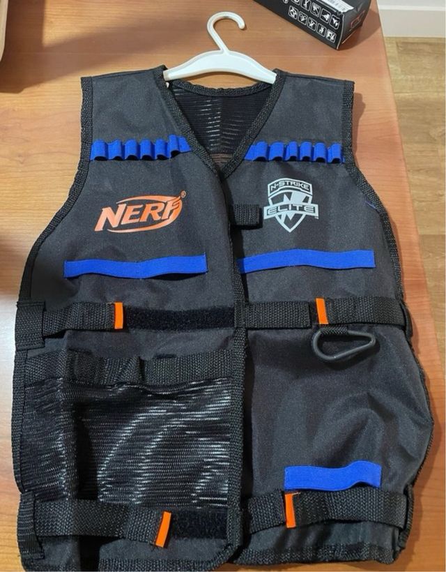 Chaleco táctico NERF para juegos de disparos. Está en buenas condiciones y listo para la acción. - Diseño con logotipos NERF y N-Strike Elite. - Bolsillos de malla para accesorios.