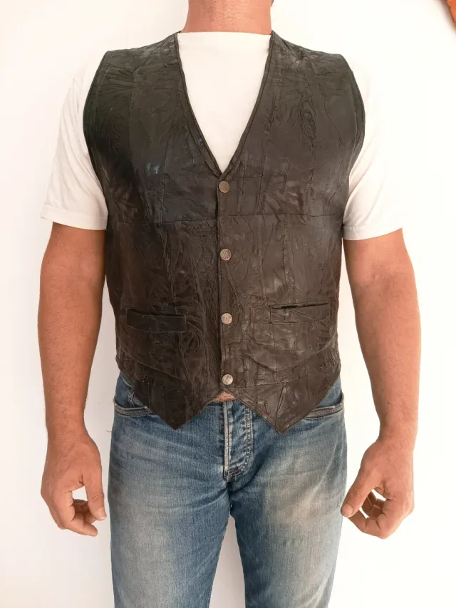 Chaleco vaquero cuero auténtico L Medidas indicada