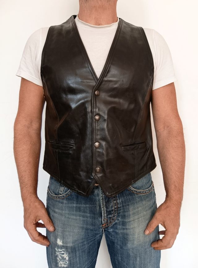 Chaleco vaquero rockero cuero auténtico M Medidas
