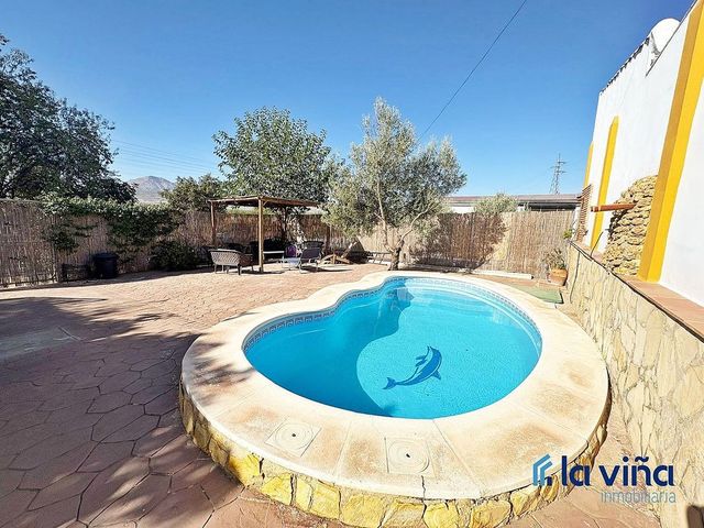 En el exterior destaca un gran patio con piscina privada y zonas techadas con barbacoa, ideal para reuniones al aire libre. El cortijo también cuenta con nueve placas solares, termo de luz y de gas, lo que ayuda a mantener un consumo energético eficiente.
