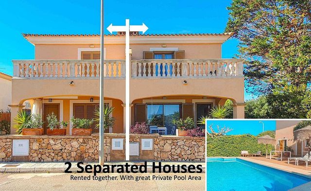 Detalles del producto2 casas pareadas pero totalmente independientes, con piscina privada, garaje y rodeadas de zona verde (no se puede construir alrededor) en la zona alta de Sa Rapita una calle muy tranquila con a penas solo el paso de los vecinos.